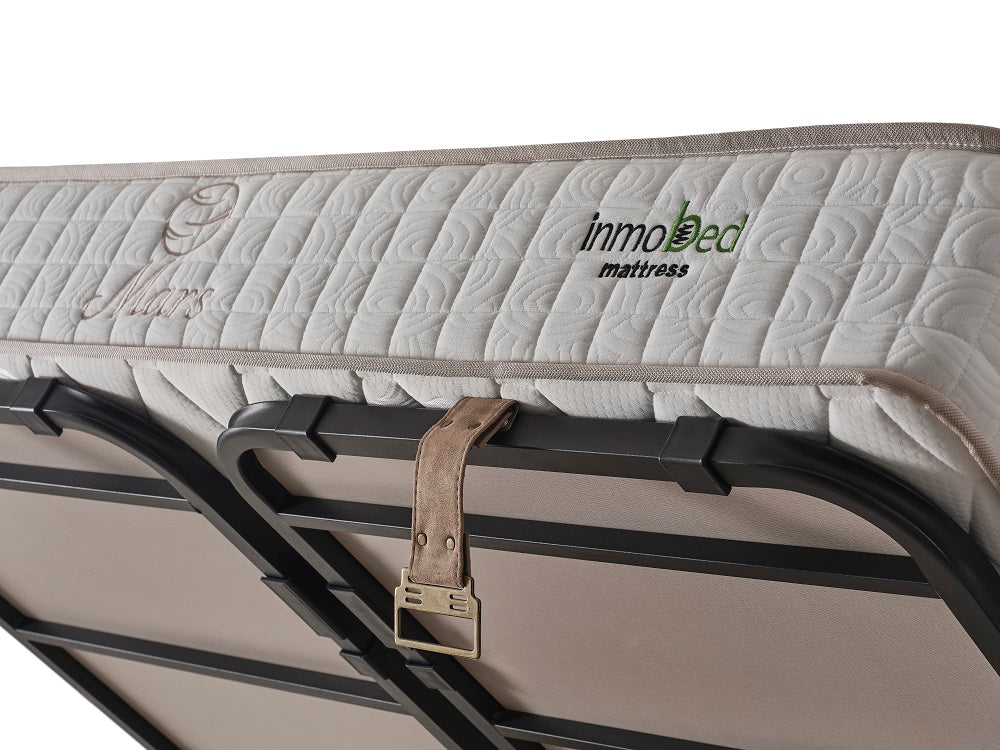 Високата, леко извита табла осигурява комфортна опора при четене или почивка, а стабилната основа гарантира надеждност и дълготрайност. Леглото е допълнено с подходящ матрак с капитонирана повърхност, който предлага отлична поддръжка на тялото и оптимален комфорт по време на сън.